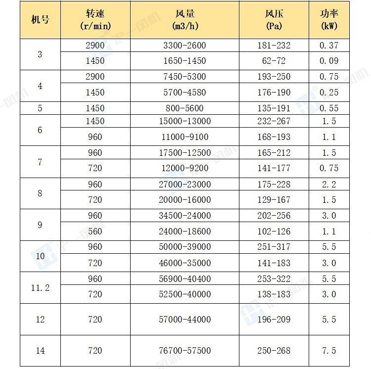 风量:1450~220800m3/h,